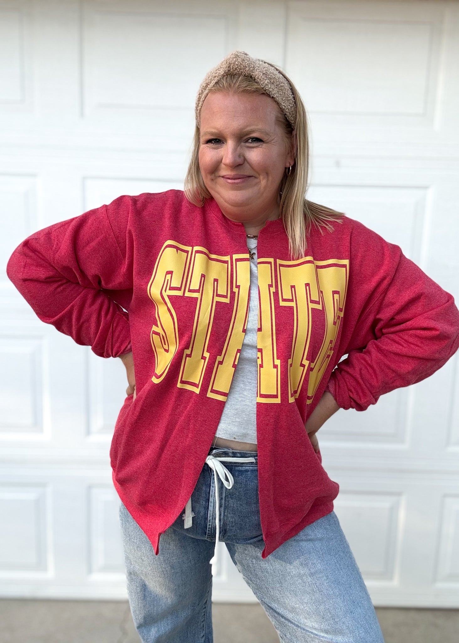 Show your team spirit in cozy style with the Viral Hand Cut Sweatshirt Cardigan. Made from soft fabric, it offers a relaxed fit. The hand-cut design adds a unique, laid-back vibe that’s as comfortable as Fall itself. Whether you're tailgating or relaxing, this cardigan keeps you warm and spirited.